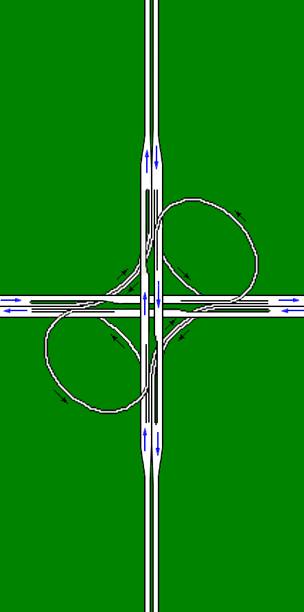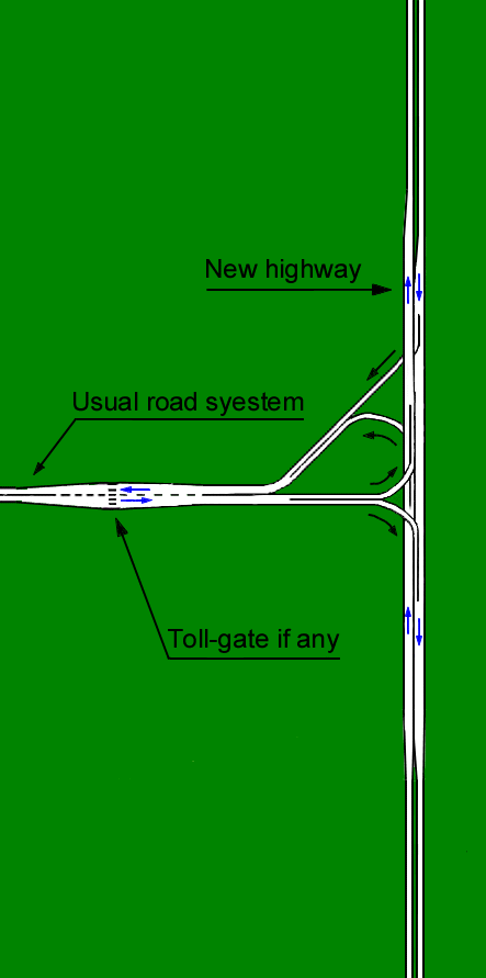 This road spur is similar to the current which joins the normal road system. Still it is more fluent and little more expensive, because of the 3 levels underpassing.